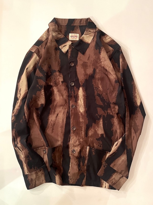 ーーー商品説明ーーー ---STORY OF THIS DESIGN--- [INKのような、、、そんな柄] インクを感じさせるような、美しい柄。 そしてサラッとした着心地。風合い。 どこをとっても絶品な一枚。 一度感じてほしい素材感と、とっておきの柄です。 ----SIZE&COLOR------ COLOR : BROWN M(38) 身幅56.5cm 着丈72.5cm 肩幅48.5cm 袖丈64cm L(40) 身幅62cm 着丈75cm 肩幅51cm 袖丈66.5cm XL(42) 身幅64cm 着丈77cm 肩幅55cm 袖丈68cm 170cm/65kg / Mサイズ着用例 POLY 100%