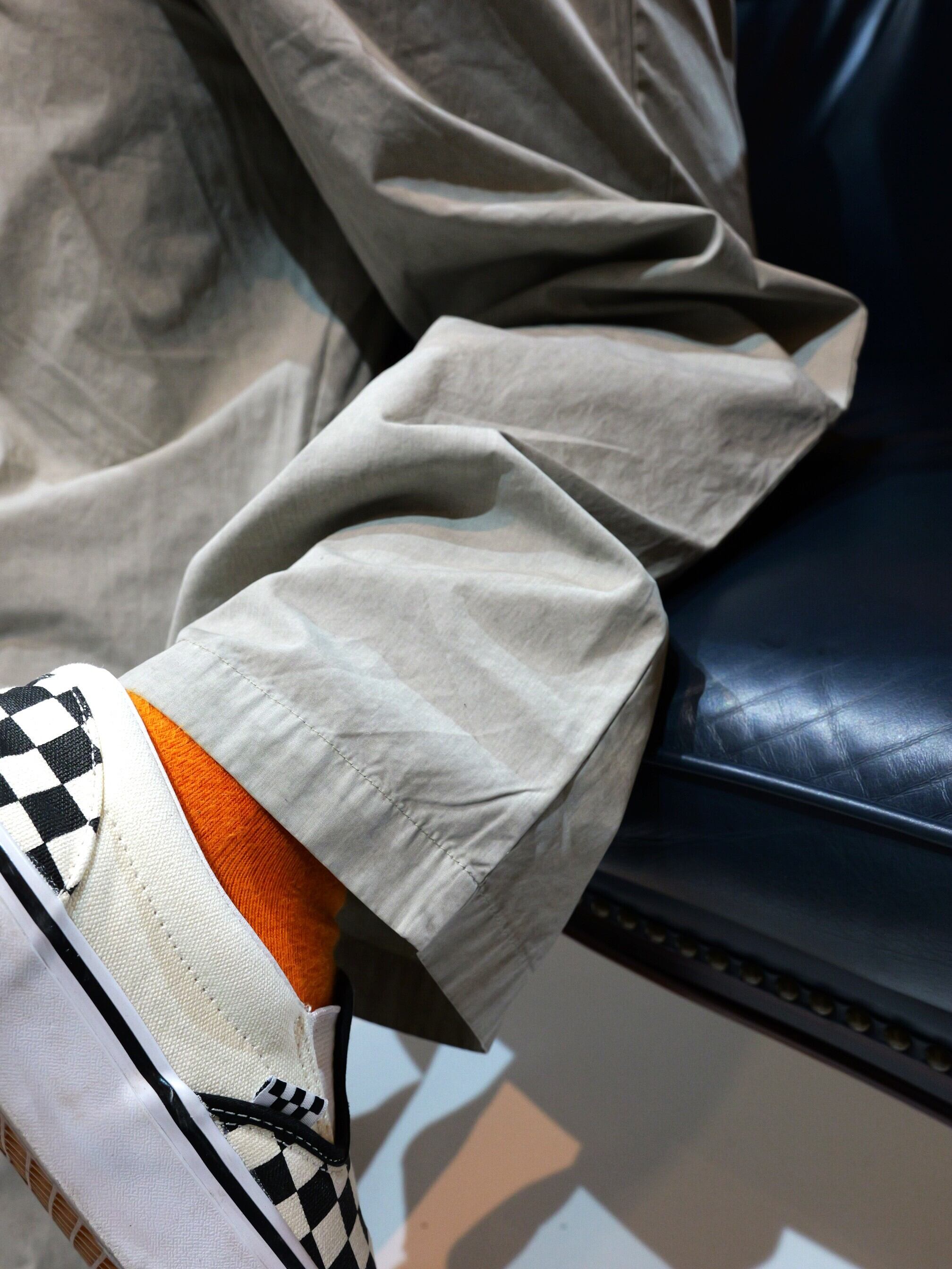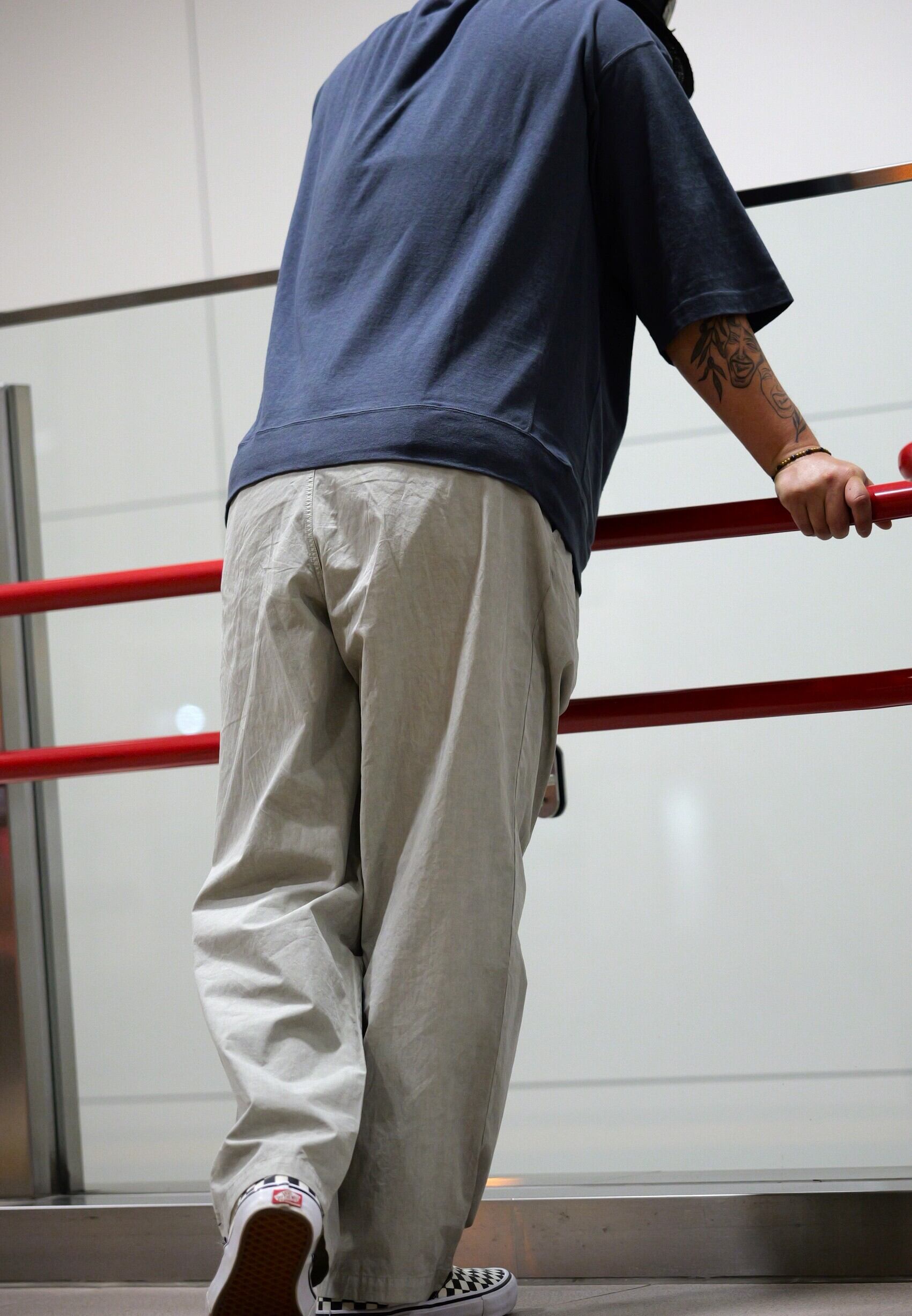 一見、ルーズ目なシルエットは裾にかけてのカットが秀逸で、ジャストで履くのはもちろん、オーバーサイズをウエストで絞って履くことで、よりワイドなシルエットをお楽しみ頂けます。