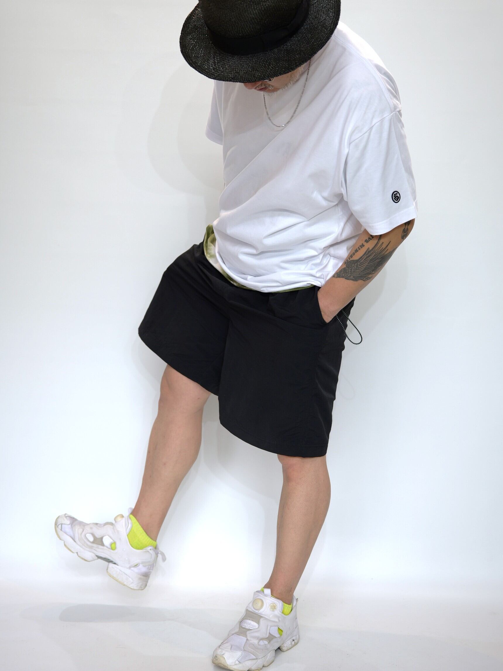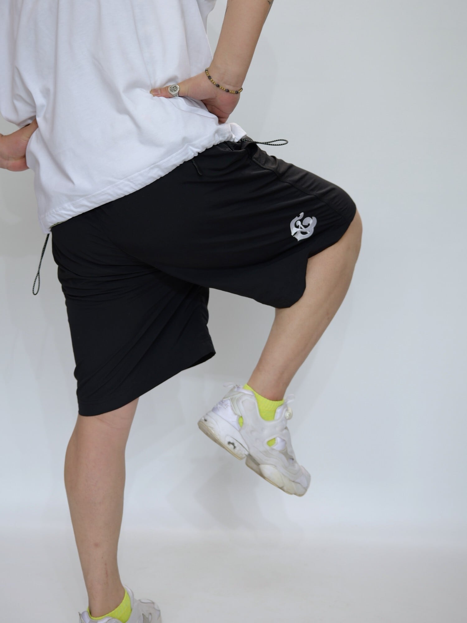 敢えて”&”ロゴを左後ろにあしらい、さり気なく後ろからチラッと見えるオシャンなショートパンツ。