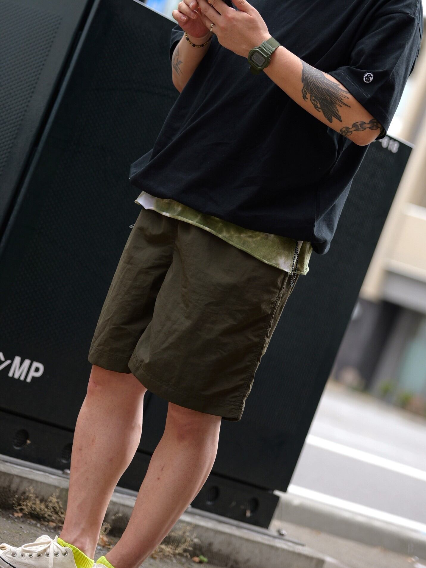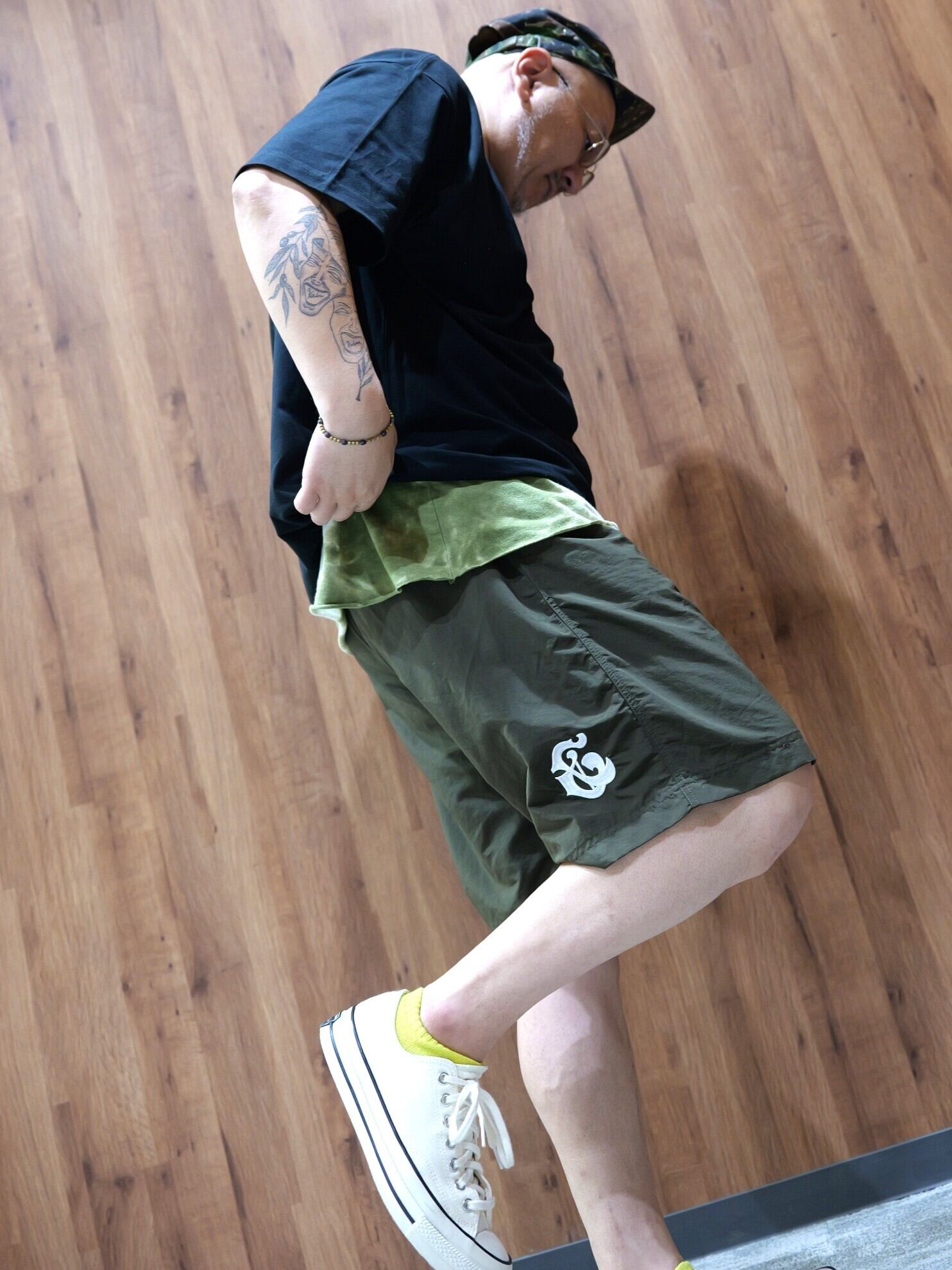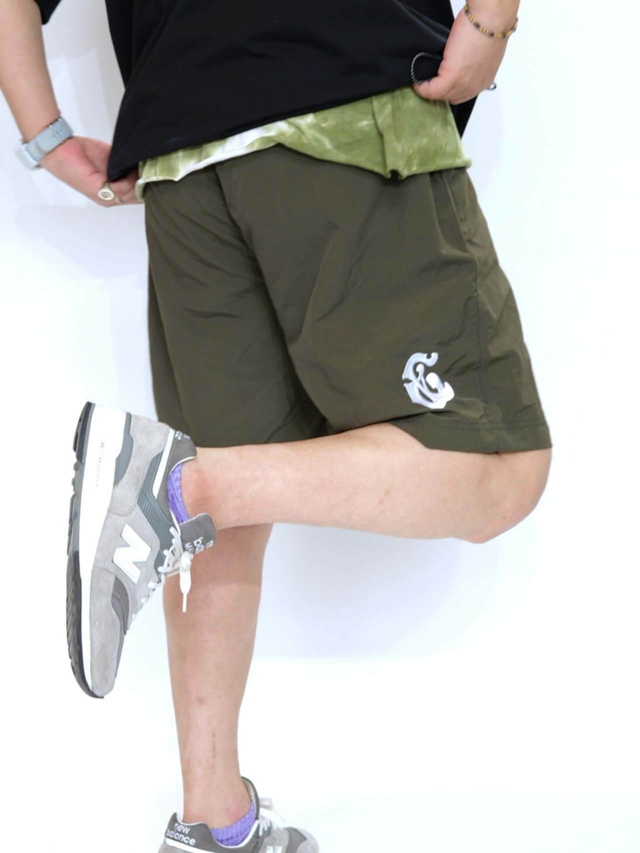 敢えて”&”ロゴを左後ろにあしらい、さり気なく後ろからチラッと見えるオシャンなショートパンツ。