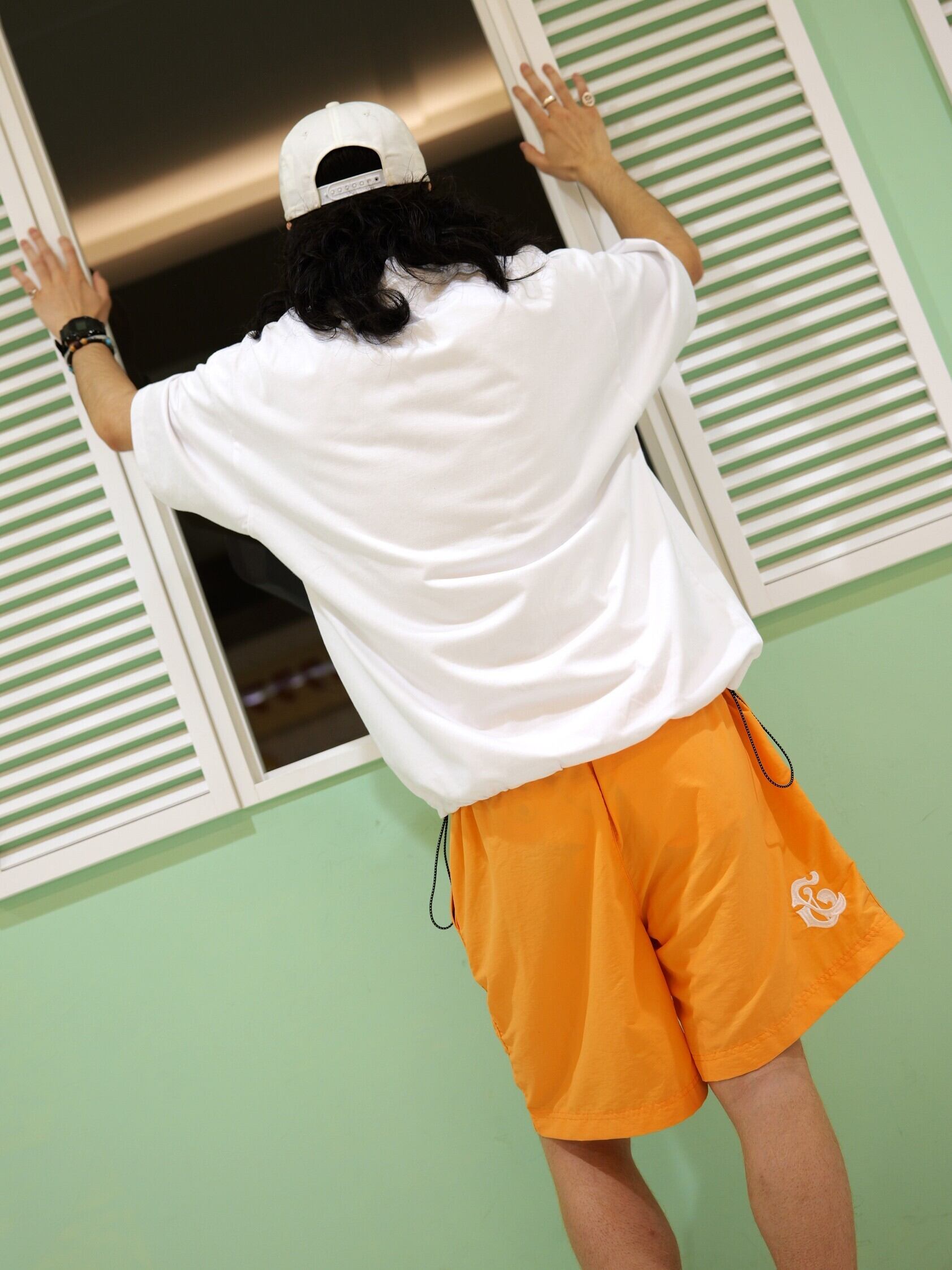 敢えて”&”ロゴを左後ろにあしらい、さり気なく後ろからチラッと見えるオシャンなショートパンツ。