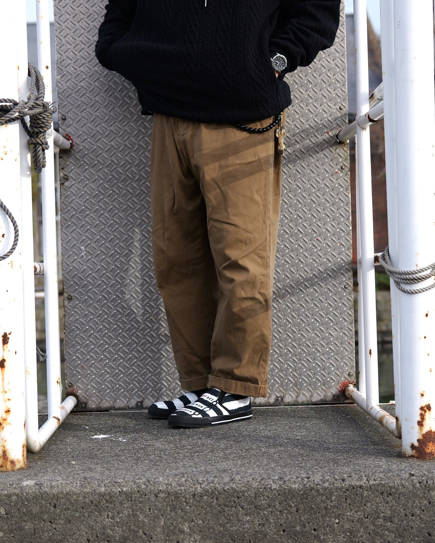 ボーダーのスリッポンという事で囚人感は出しつつも、