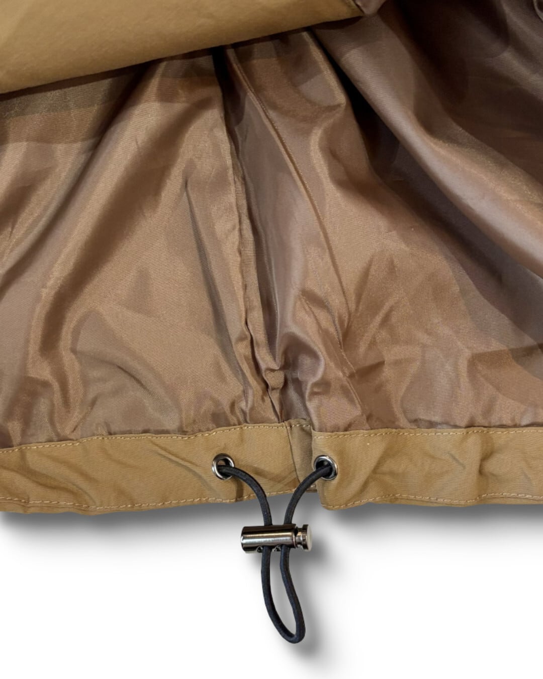 雨や雪といった悪天候時には、6割のコットンが膨張して生地の伱間を埋め、生地全体の密度が増します。
