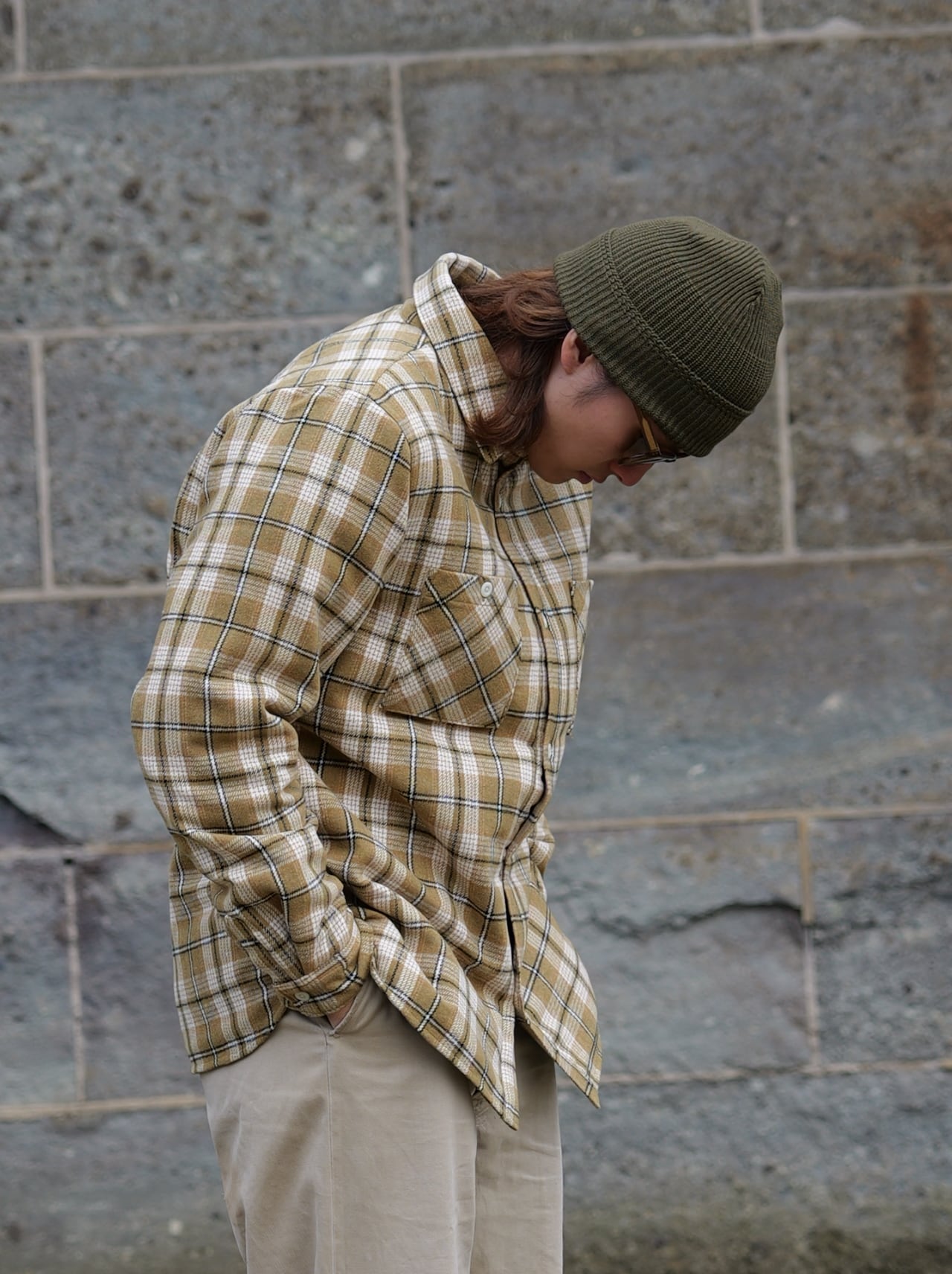 野暮ったさを感じさせない絶妙な深さのシルエットが、どんなスタイルにも馴染む。