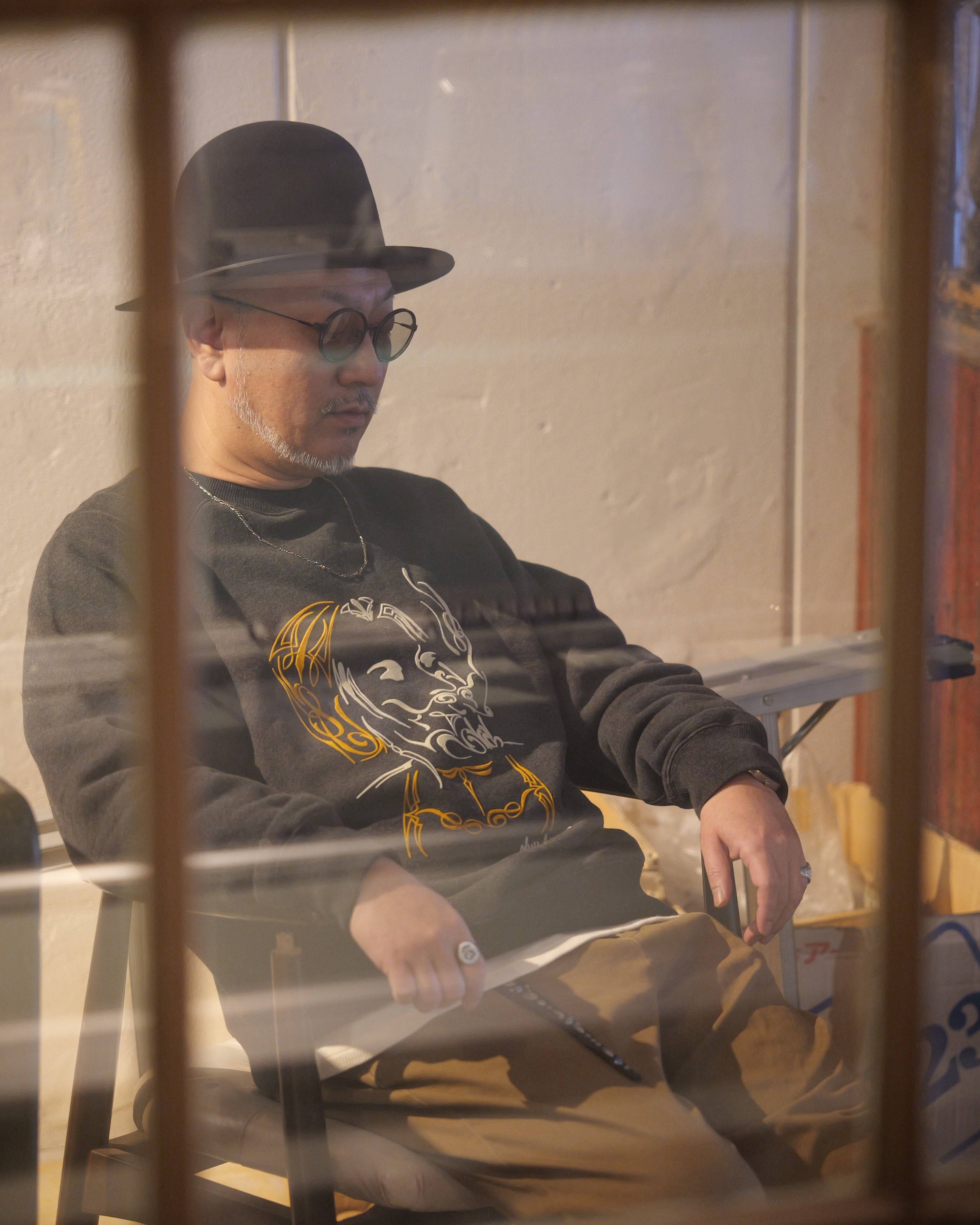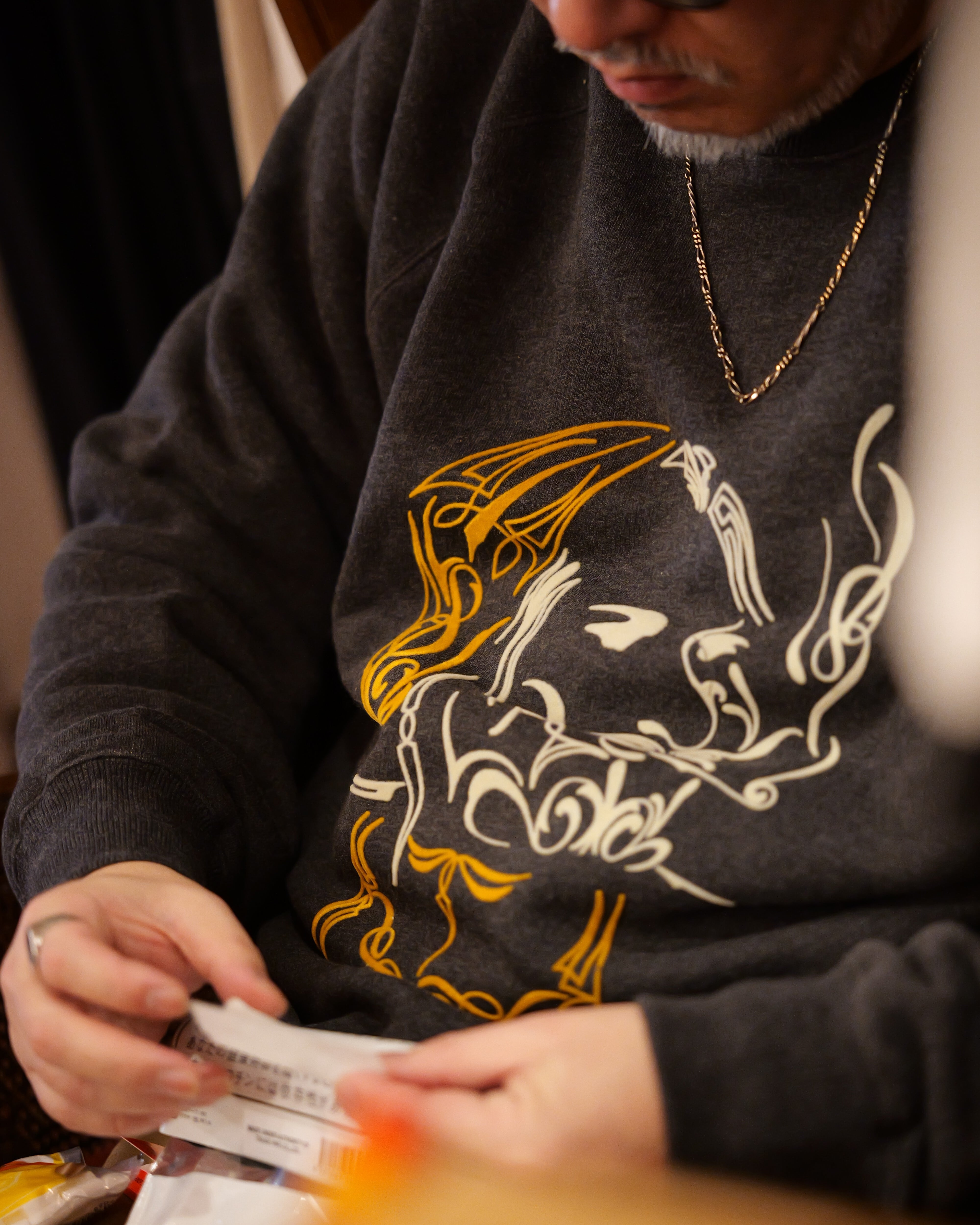 繊細なピンストライプアートで表現したラグランスリーブスウェット。